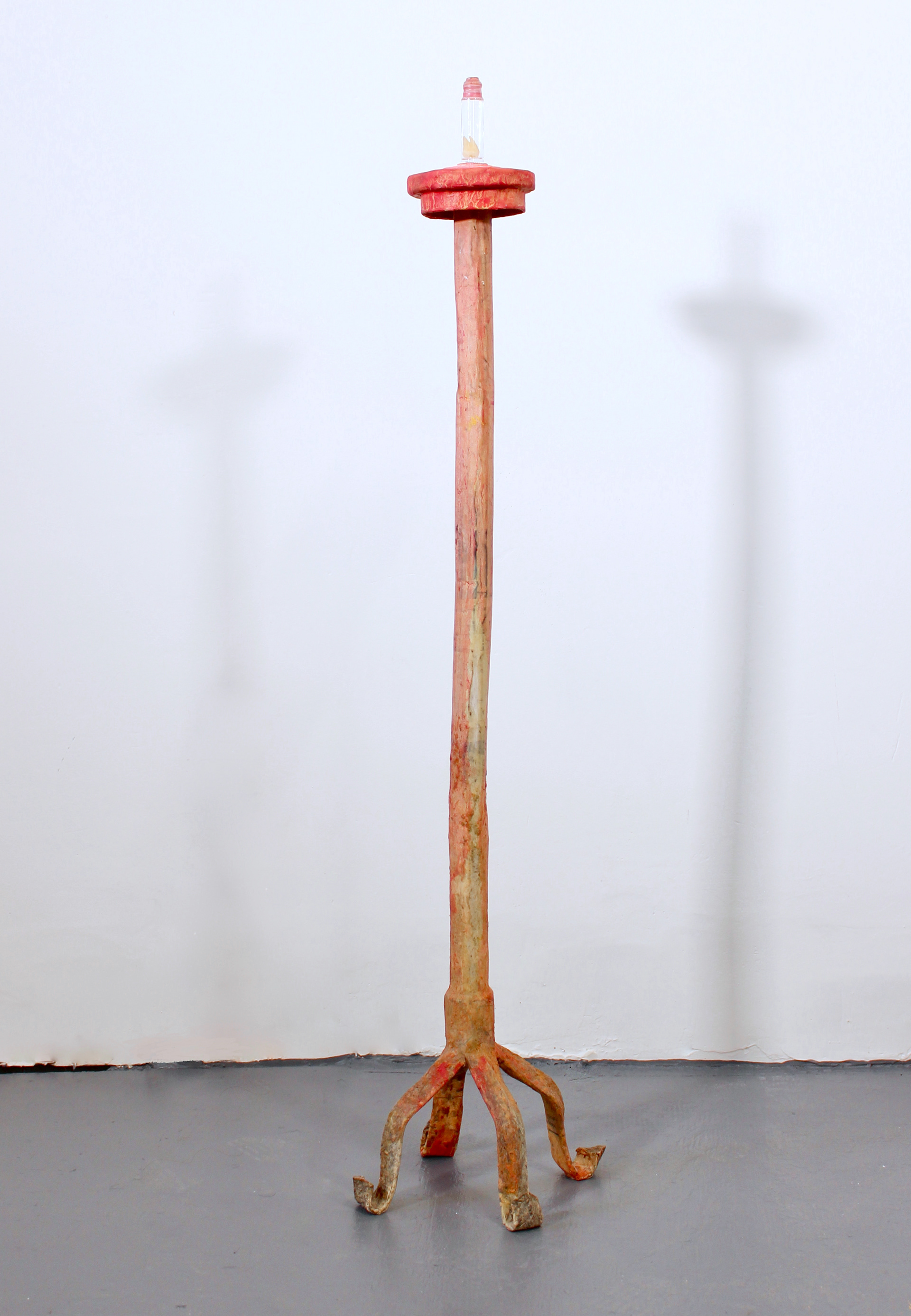 Clay, wire, wood, acrylic and carved candle